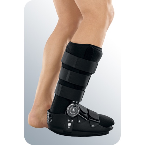 A Protect Rom Walker serve para mobilização funcional precoce através da articulação ROM (Range Of Motion) regulável. Graças às tiras de velcro dispostas em círculo, consegue-se uma compressão controlada.