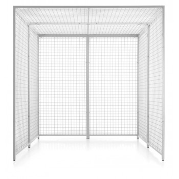 Estrutura em tubo de aço com painéis em malha metálica, pintura epoxy.