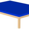 Estofo em espuma de alta densidade e napa com rebordo a toda a volta da estrutura.
