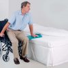 De forma curva para incoporar facilmente a roda das cadeiras de roda. De plástico macio e reforçado, possui almofadas antideslizantes na parte inferior e nas extremidades aumentando a estabilidade durante a transferência.