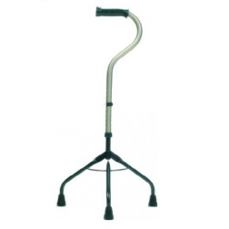 Pirâmide tripé com base em aço preto, punho curvo em alumínio anodizado champanhe, regulável em altura (mínima de 80 cm e máxima de 95 cm). Ponteiras de 14mm.